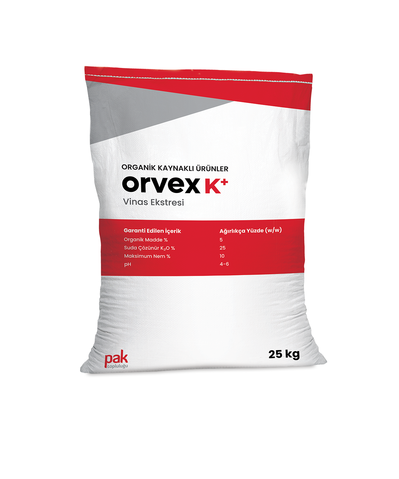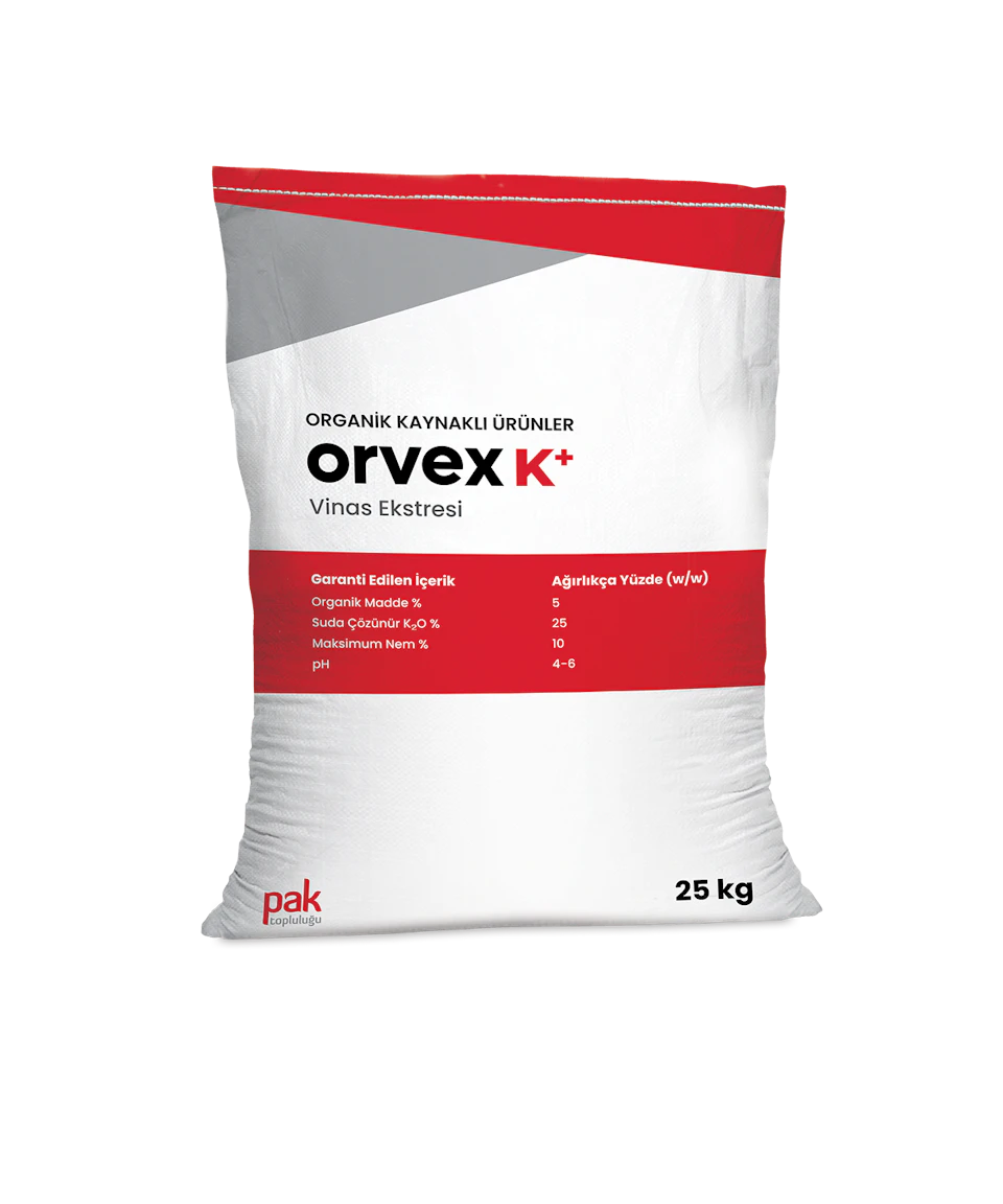 ORVEX K+, bitkilerin potasyum ihtiyacını dengeli şekilde karşılayan, organik kökenli granül vinas ekstresidir. Yüksek çözünürlüğü sayesinde toprakta hızlı etki gösterir ve verim–kalite artışına katkı sağlar.